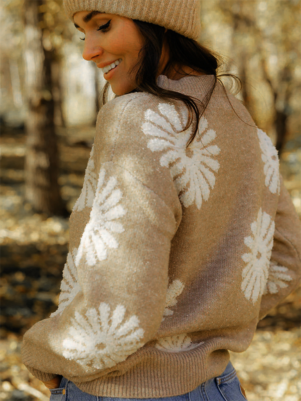 New style flower knitted casual pullover sweater