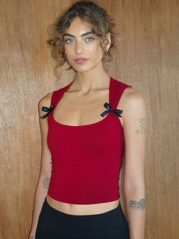 New style simple casual versatile vest with bow decorative top
