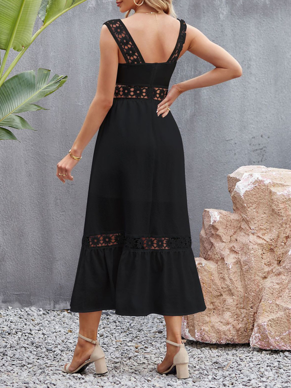 New style solid color hollow lace stitching square collar sleeveless suspender dress