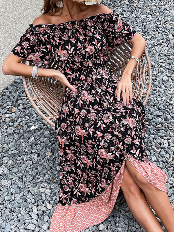 New style women’s one-neck print dress temperament