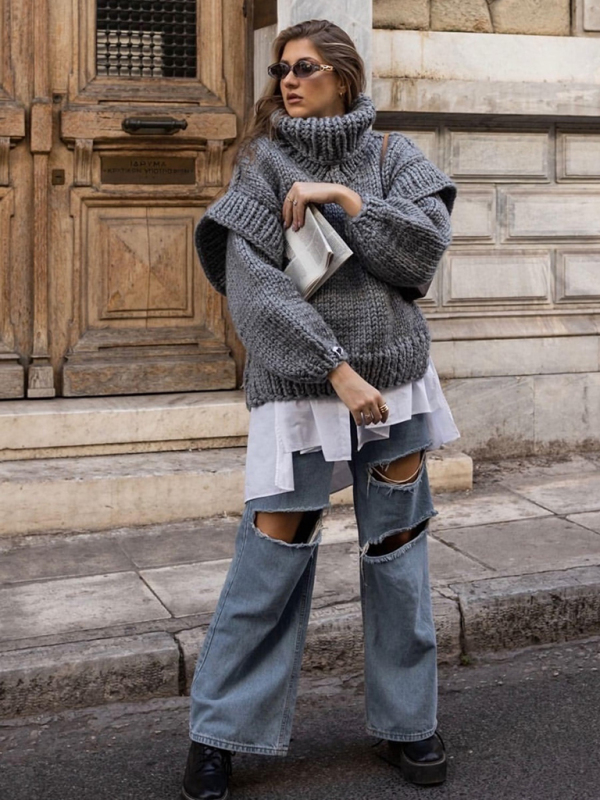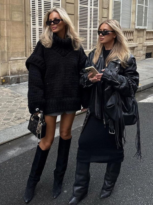 New women’s sweater pullover fluffy long sleeve turtleneck sweater