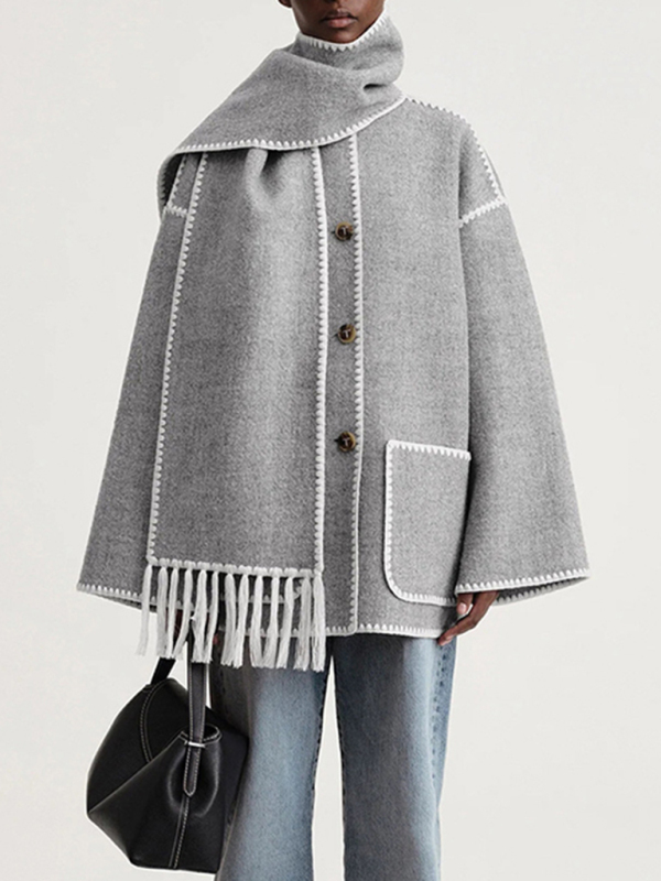 Women’s New Wool Blended Coat Fringed Scarf Collar Loose Wool Coat is suitable for many occasions, the simple design makes the boring season colorful and interesting. A variety of collocation options make you confident and beautiful. Please use the size guide shown in our images. Please read each element in the size guide carefully before choosing a size. The size is measured manually, and it is normal for there to be an error of 1-3cm.