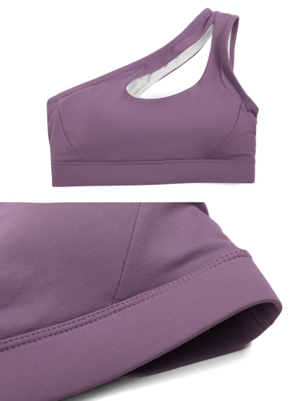 Experience ultimate comfort with this one-shoulder sports bra.