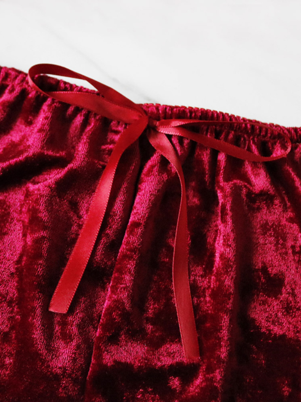 Sexy Velvet V-neck Underwear Two-Piece Set Sexy Lingerie Homewear Set is suitable for many occasions, the simple design makes the boring season colorful and interesting. A variety of collocation options make you confident and beautiful. It fits snugly without restricting your movement.