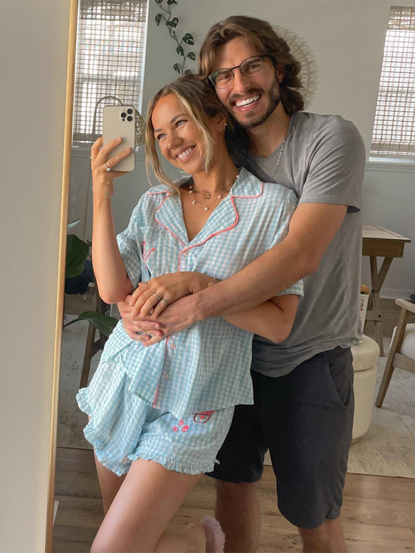 Simple plaid teapot embroidery home wear pajamas set