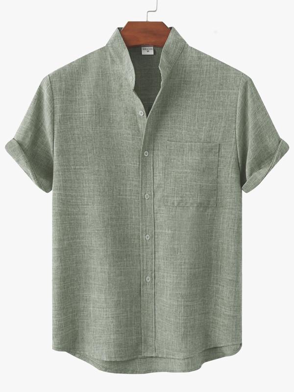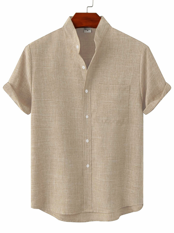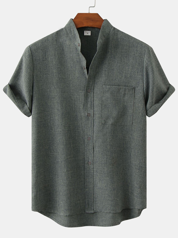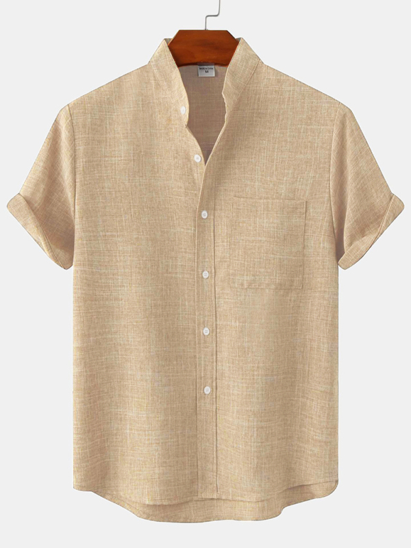 The short-sleeve solid color cotton linen men’s shirt is suitable for many occasions, and the simple design makes the boring season colorful and interesting. A variety of collocation options make you confident and handsome. It fits snugly without restricting your movement.