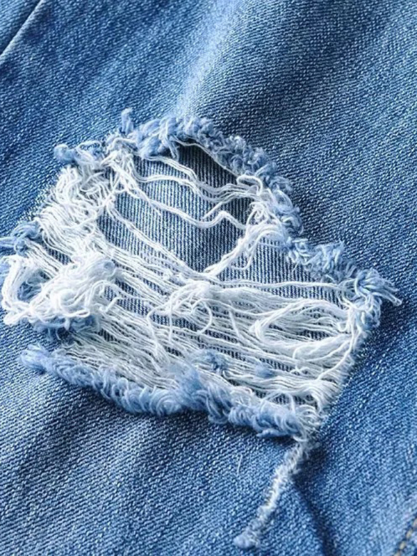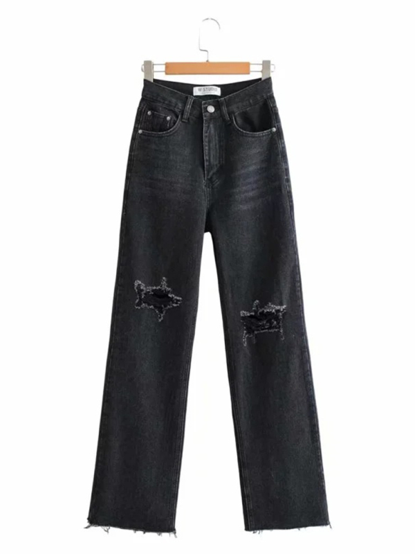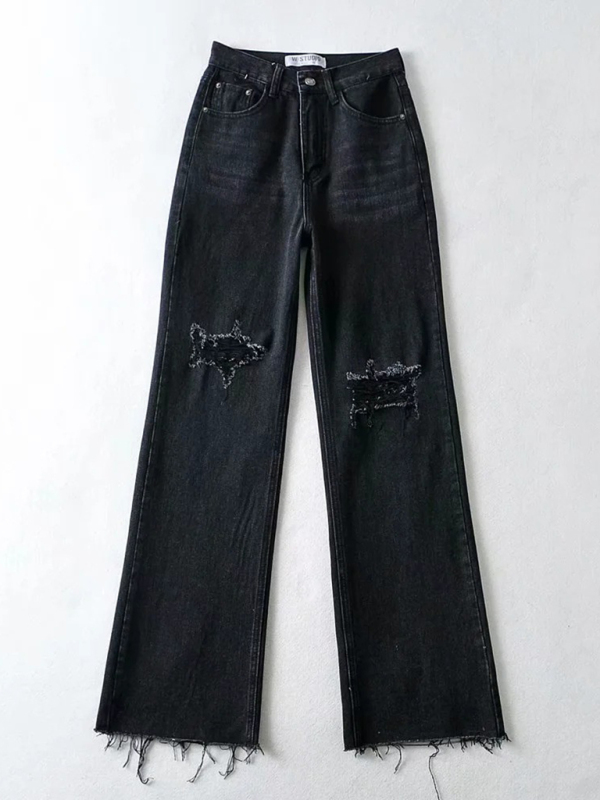 Street loose jeans, ripped raw edge straight pants, floor mopping pants