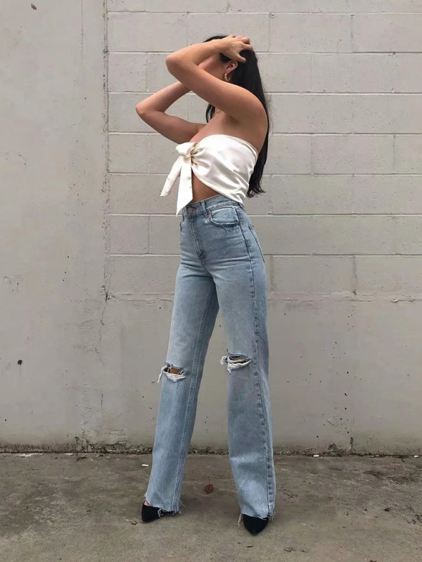 New street loose jeans, ripped raw edge straight trousers and floor-length trousers. The simple design makes the boring season colorful and interesting. A variety of matching options make you confident and beautiful. Please use the sizing guide shown in our images. Please read each element of the sizing guide carefully before choosing a size. The size is measured manually, and there is an error of 1-3cm, which is normal.