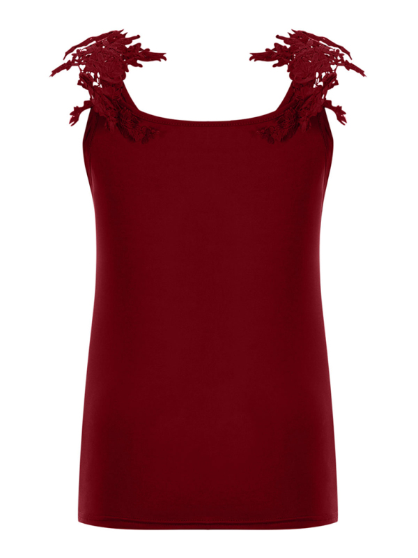 Summer U-neck solid color lace t-shirt top vest. Please use the size guide shown in our pictures. Before choosing a size, please read each element of the size guide carefully. Unique design, classic style, casual and comfortable. It is suitable for outing and leisure. The size is measured manually, and the error of 1-3cm is normal.