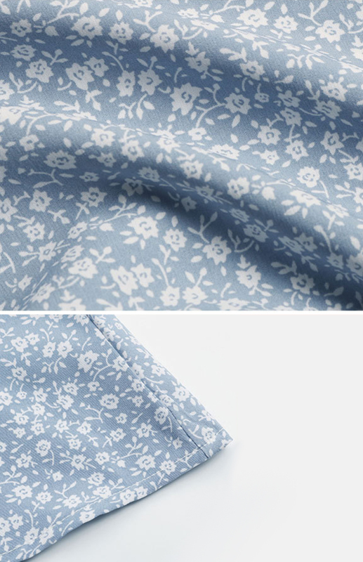 V-Neck Floral Dress Slim Slit Puff Sleeve Dress