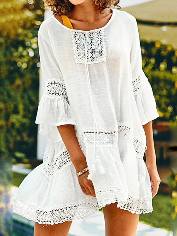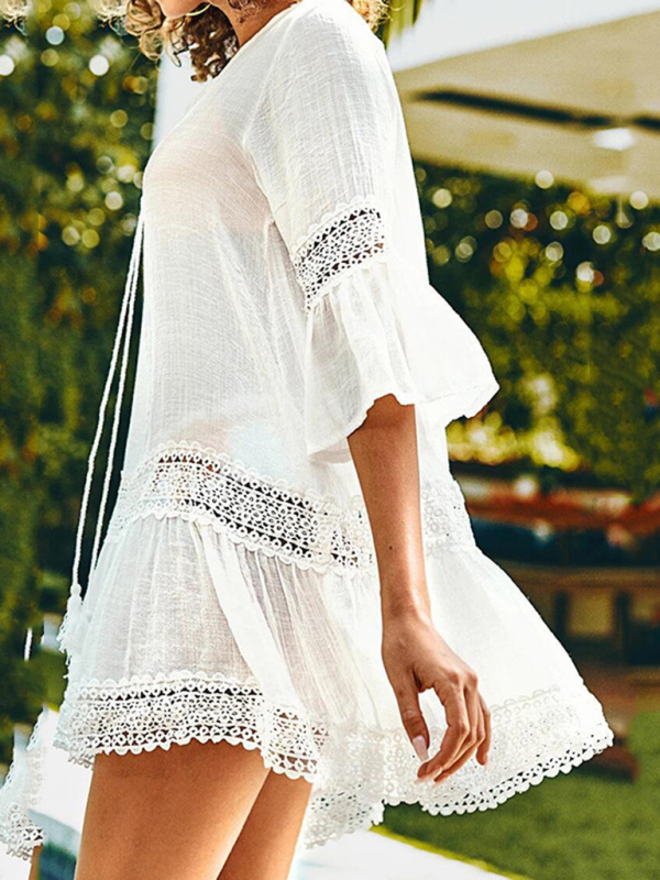 The white mid-length blouse, beach skirt, mid-sleeved top, and sun protection shirt are suitable for many occasions. The simple design makes the boring season colorful and interesting. A variety of collocation options make you confident and beautiful. It fits snugly without restricting your movement.