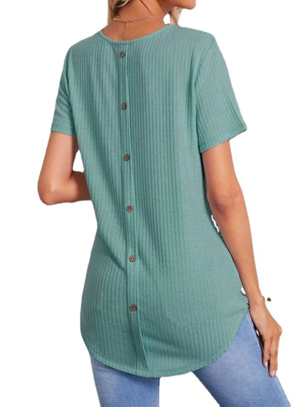 Women’s Back Single Breasted Casual Loose Short Sleeve T-Shirt