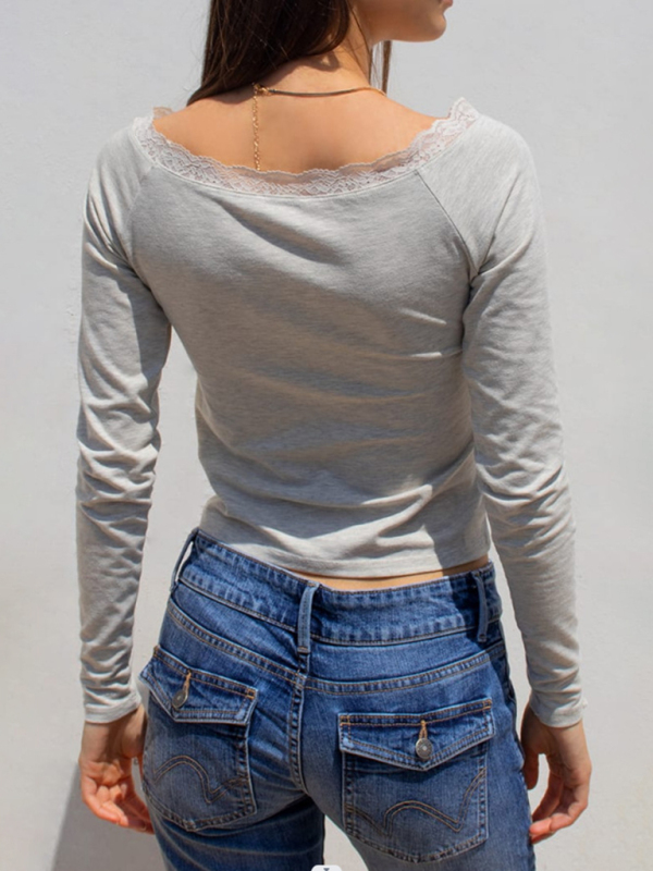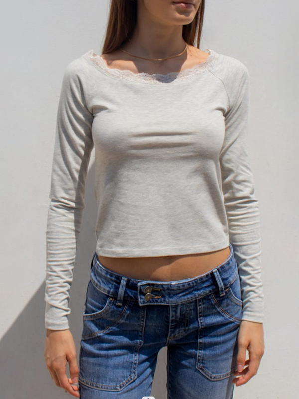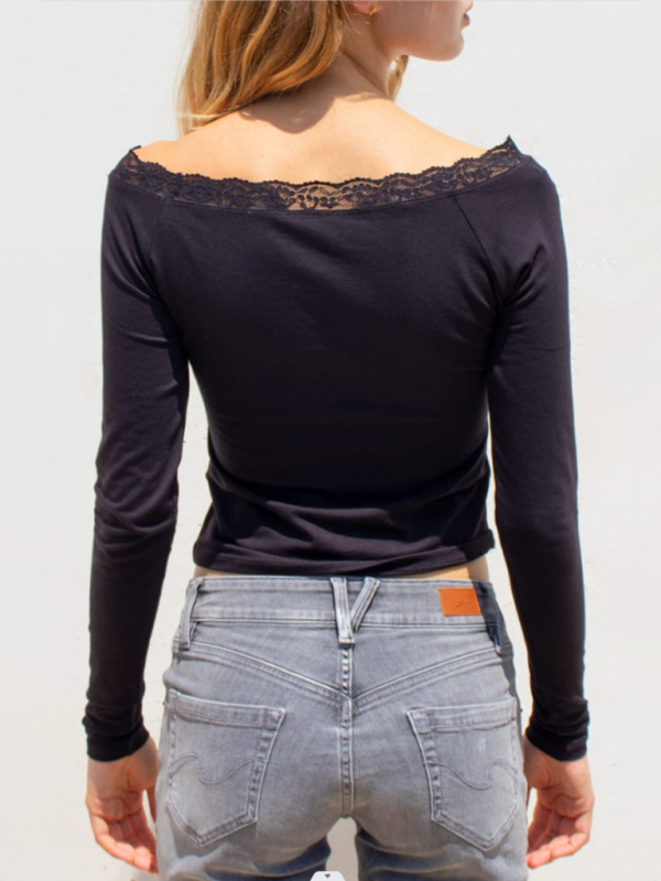 Women’s boat neck sexy lace patchwork long-sleeved sweater top