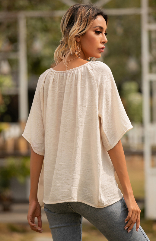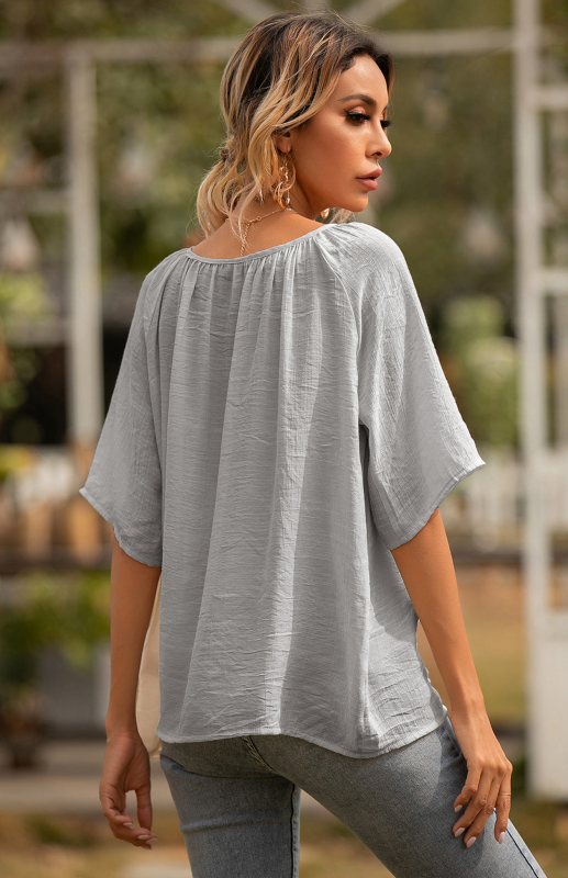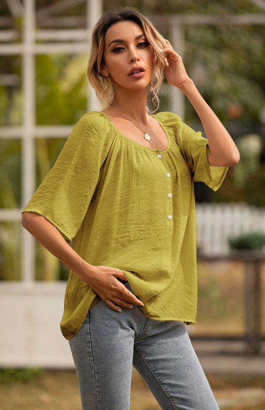 Effortlessly chic for spring and summer, this women’s square neck top features comfortable raglan half sleeves and a loose fit. Perfect for casual outings, it pairs beautifully with jeans or skirts. Ideal for wholesale or dropshipping.