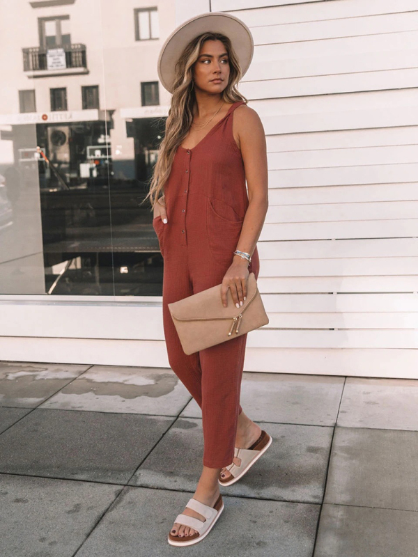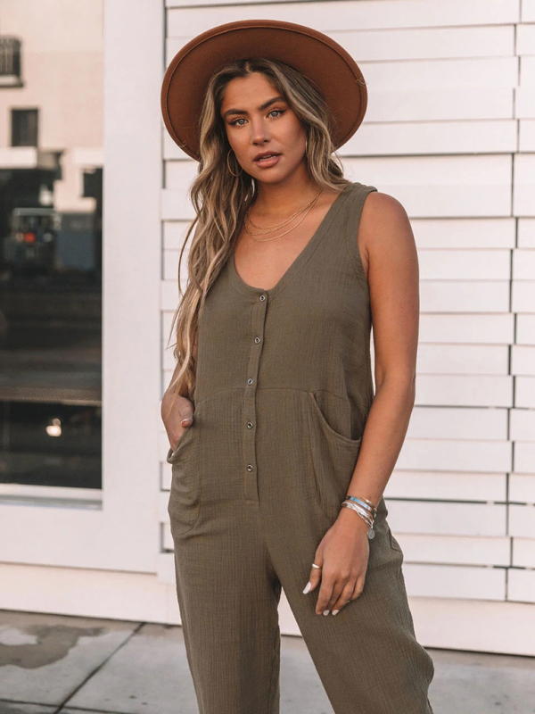 Women’s casual fashion solid color button down casual jumpsuit is suitable for many occasions, the simple design makes the boring season colorful and interesting. A variety of collocation options make you confident and beautiful. It fits snugly without restricting your movement.