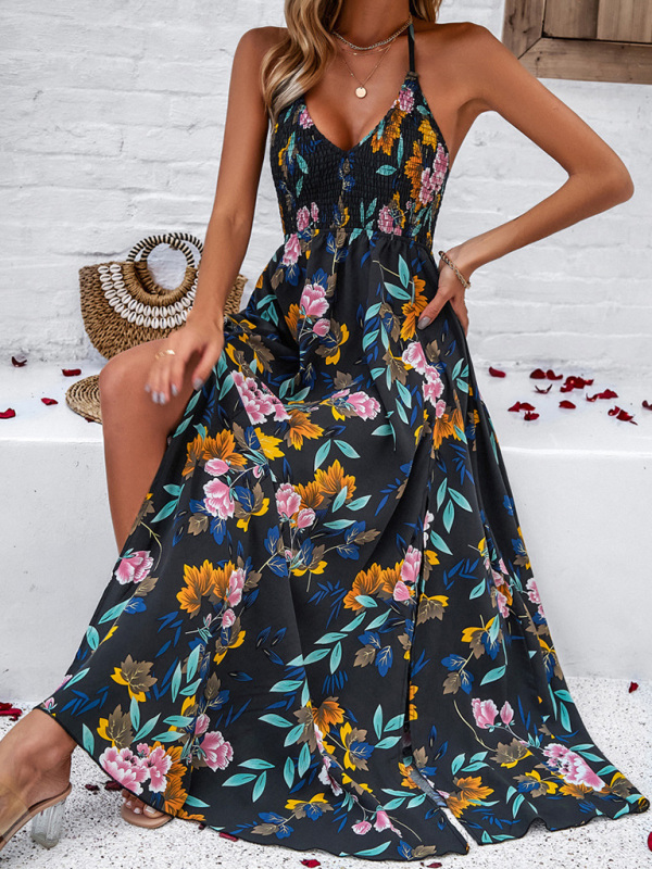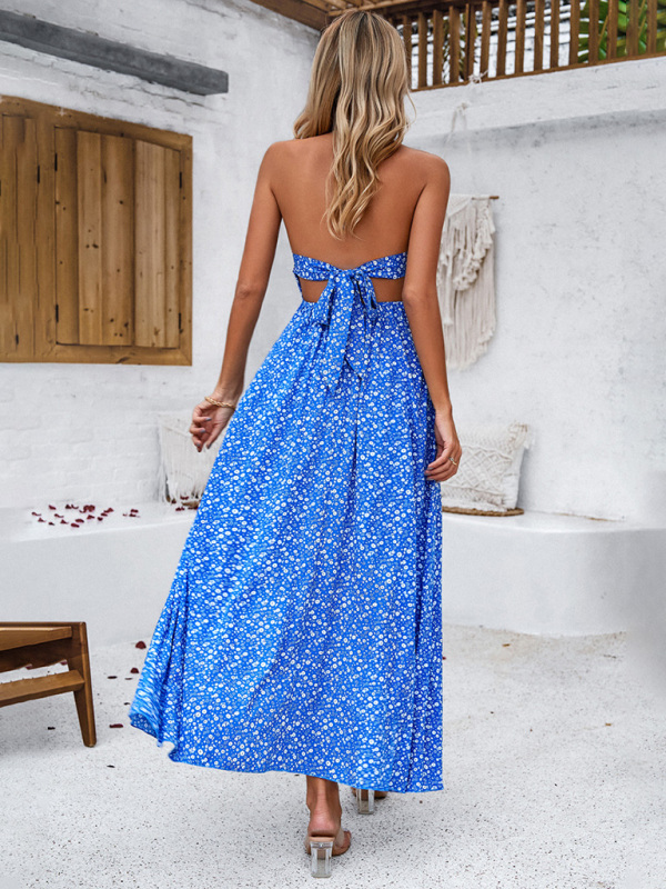 Women’s casual holiday printed suspender backless dress