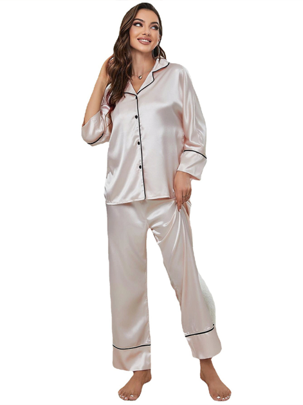 Women’s color-blocking imitation silk long-sleeve pajama sets