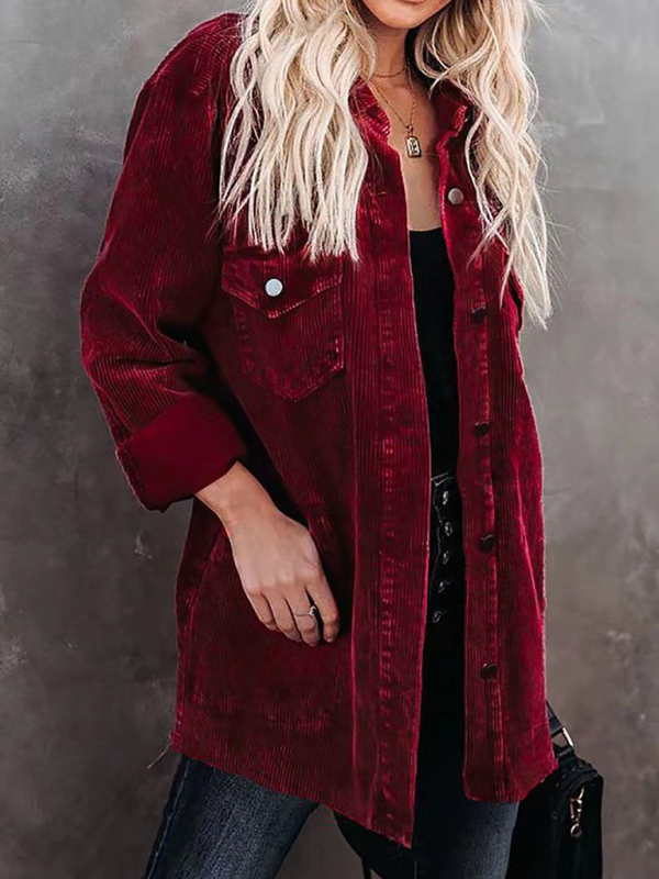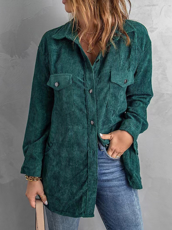 Women’s Corduroy Lapel Button Loose Casual blouse. Please use the size guide shown in our pictures. Before choosing a size, please read each element of the size guide carefully. Unique design, classic style, casual and comfortable. It is suitable for outing and leisure. The size is measured manually, and the error of 1-3cm is normal.