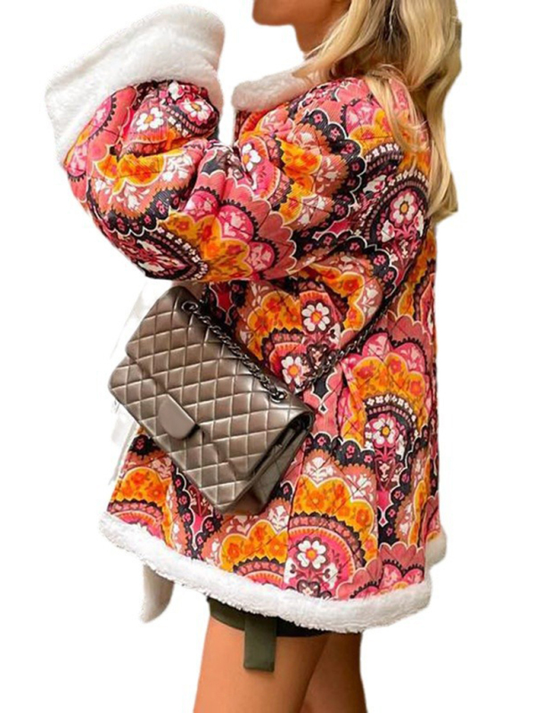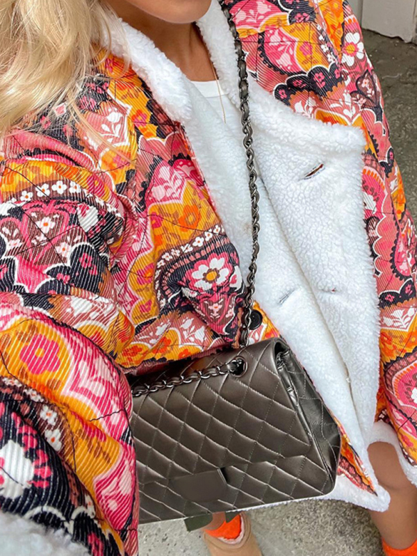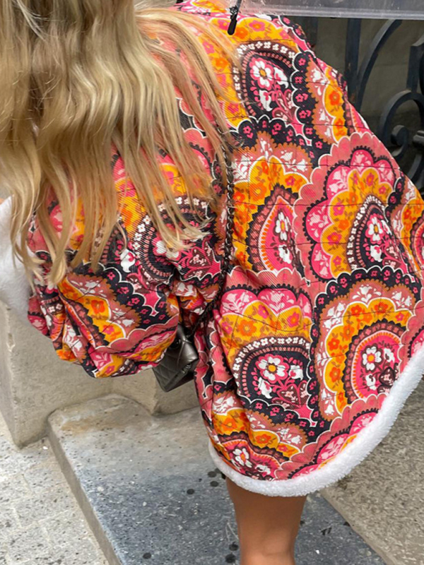 Women’s cotton coat personalized street retro printed loose wool coat