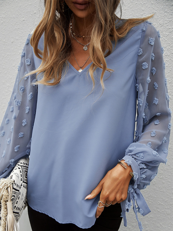 Women’s elegant V-neck puff sleeve shirt