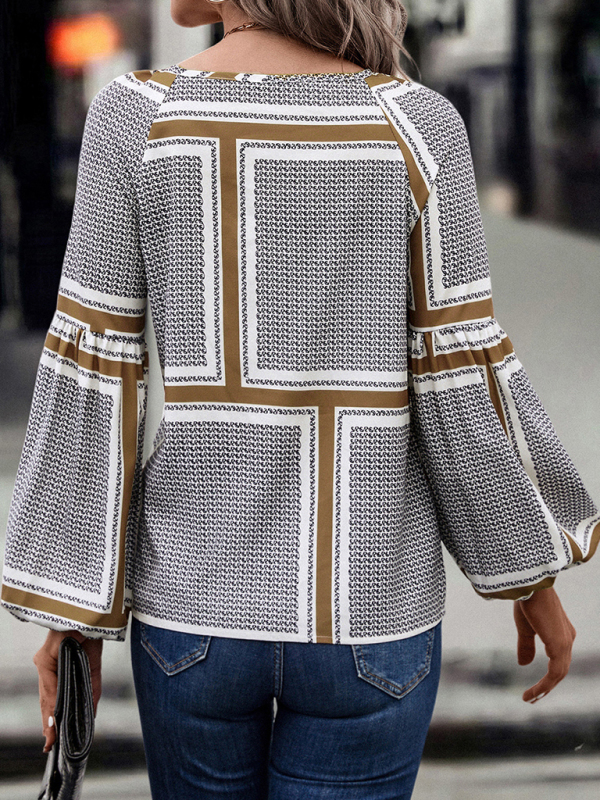 Women’s Fashion Balloon Sleeve Printed Shirt