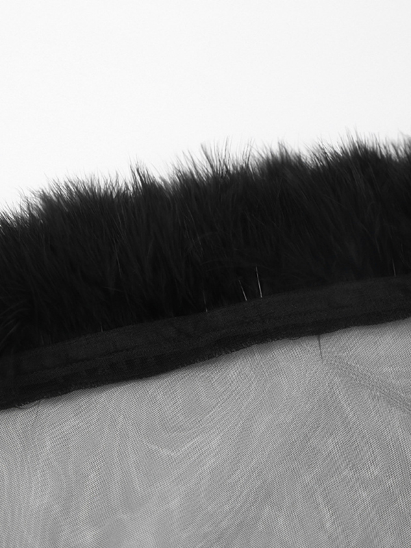 Women’s Feather Spliced Mesh Lounge Clothes Nightgown