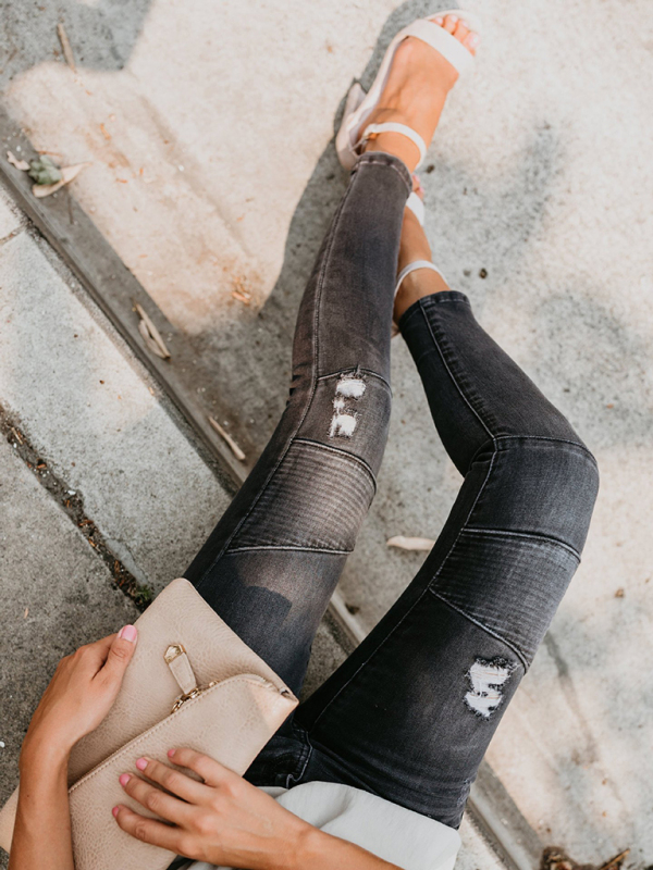 Women’s fit pressed pleated distressed stretch calf jeans featuring a modern fit and soft, comfortable fabric. It can be worn for daily, dating, going out, vacation and so on. Washing method can be machine wash or hand wash. Fabric resists wrinkling and pilling. The size is measured by hand, and it is normal for there to be an error of 1-3cm.