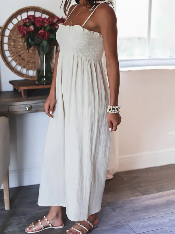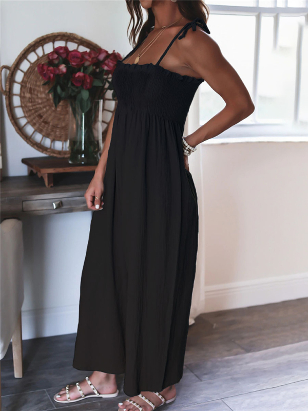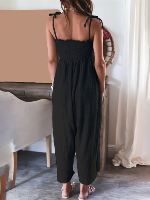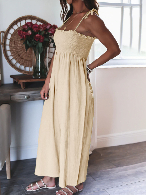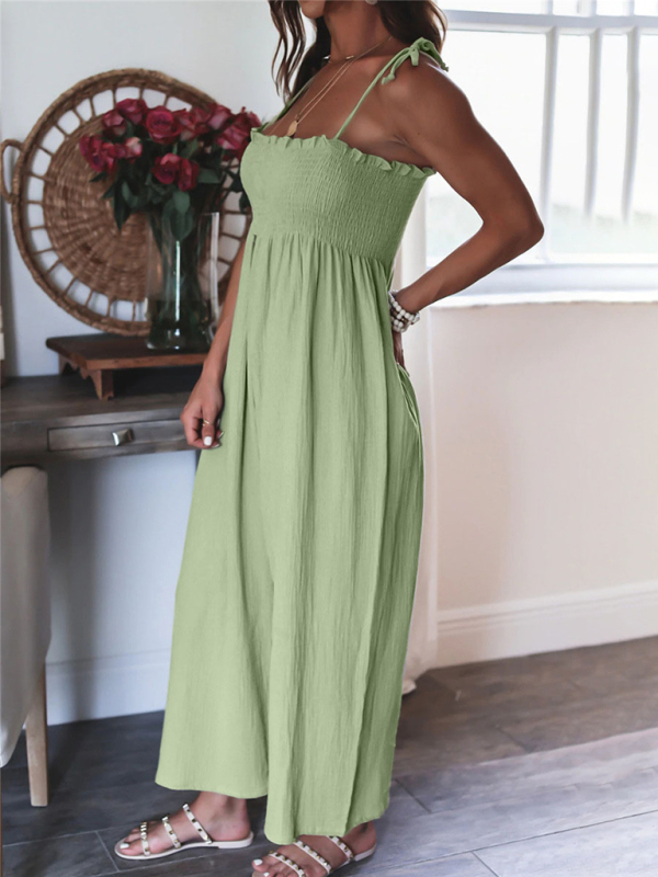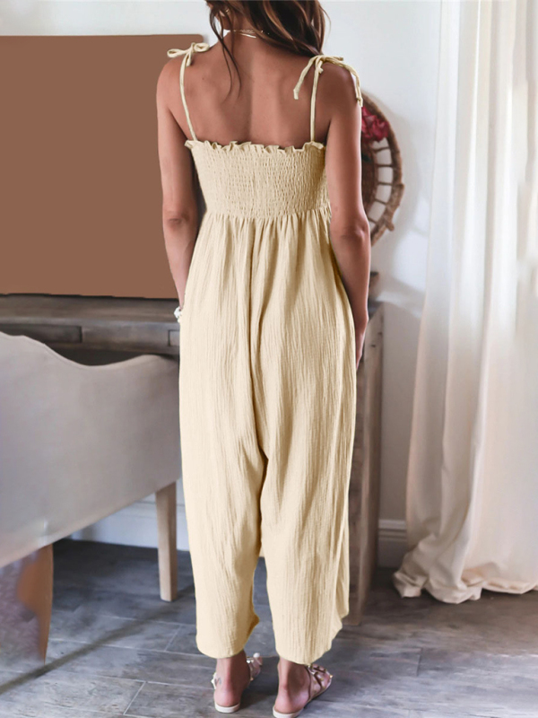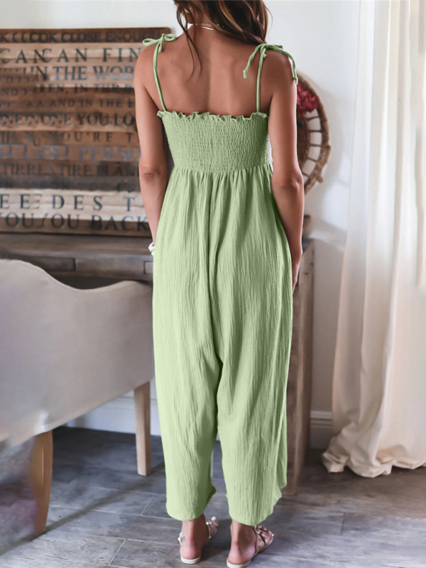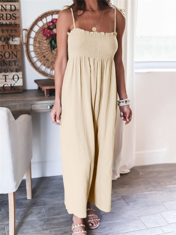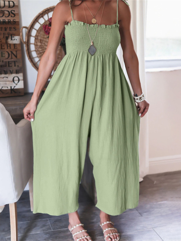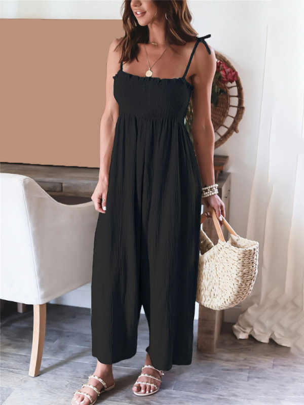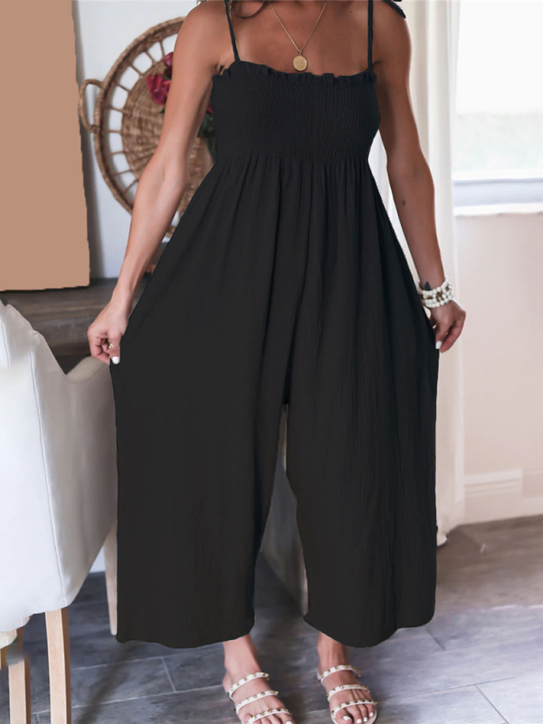The jumpsuit is designed in solid colors, simple and elegant. The solid color design makes the jumpsuit more versatile and can be matched with various tops and jackets to show different styles.