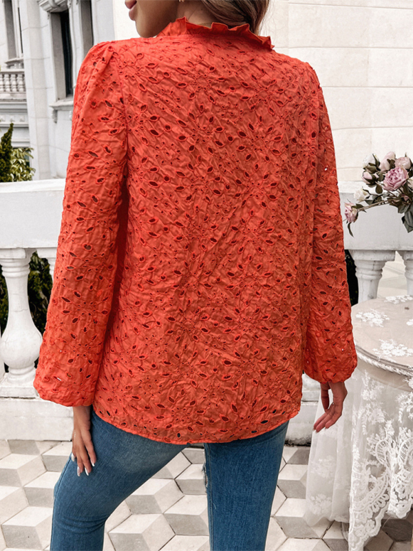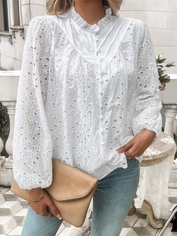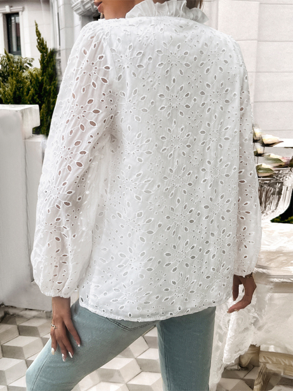Women’s hollow puff sleeve embroidered top