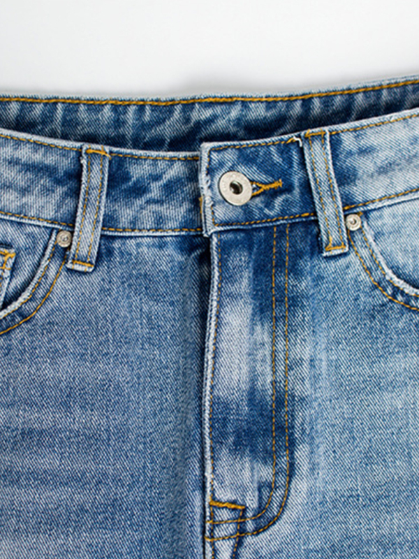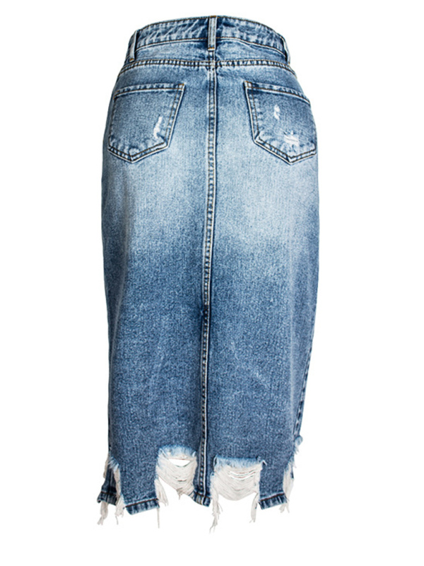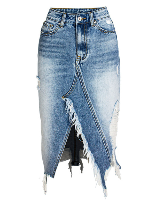 Women’s Irregular fringed ripped butt-lifting denim midi skirt
