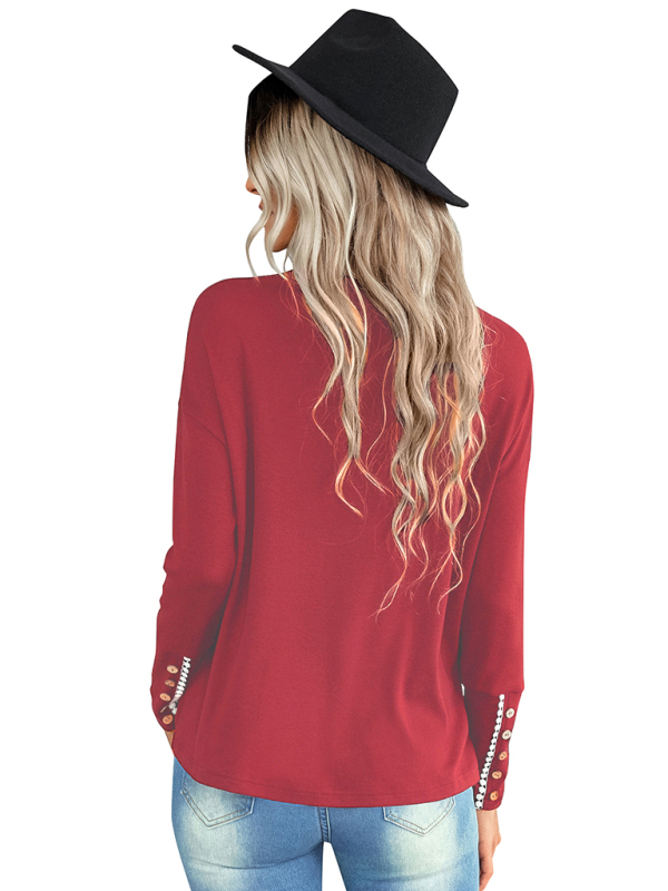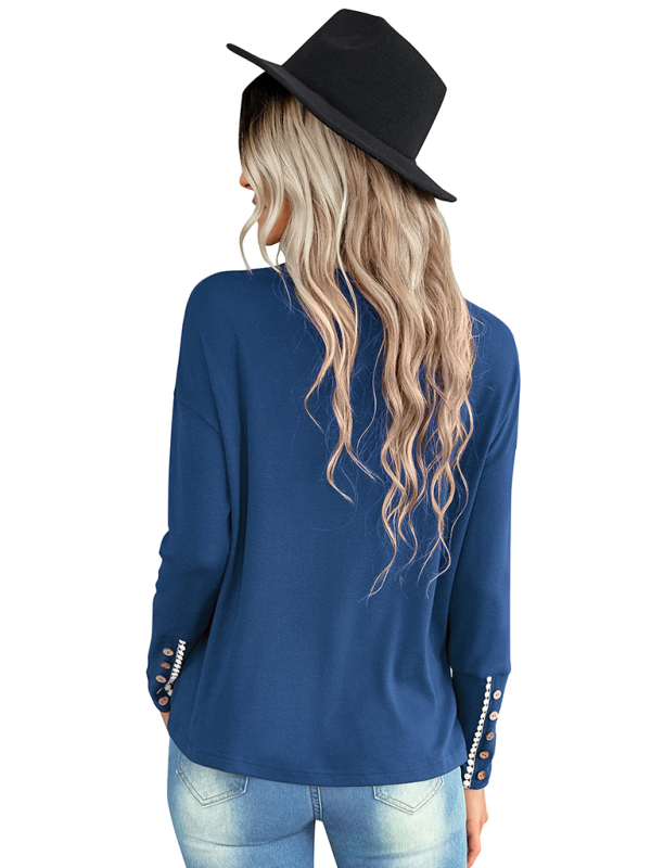 Elegant loose T-shirt with buttoned cuff details.