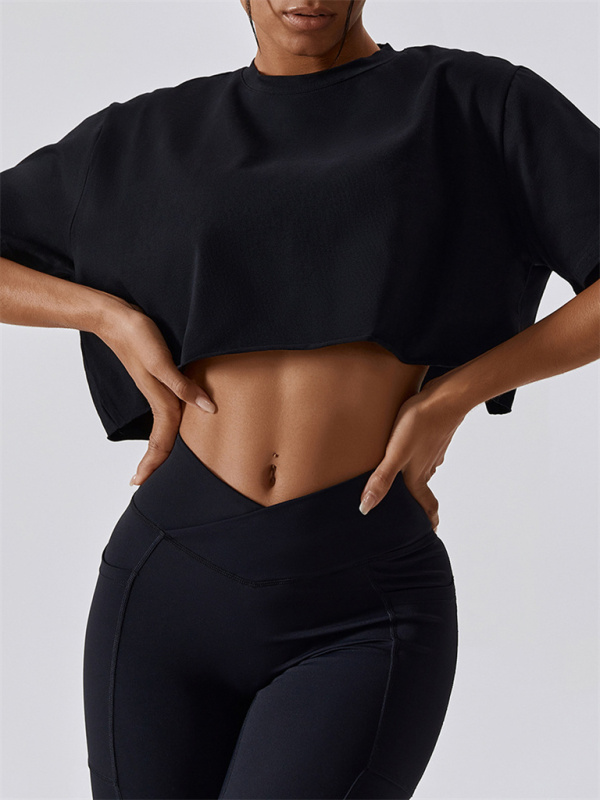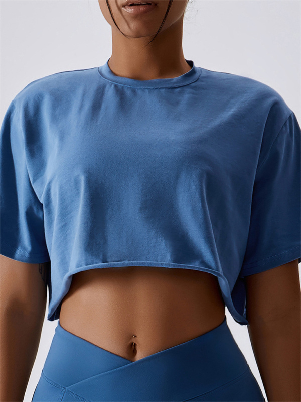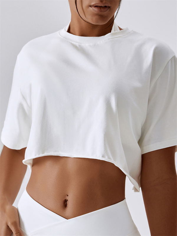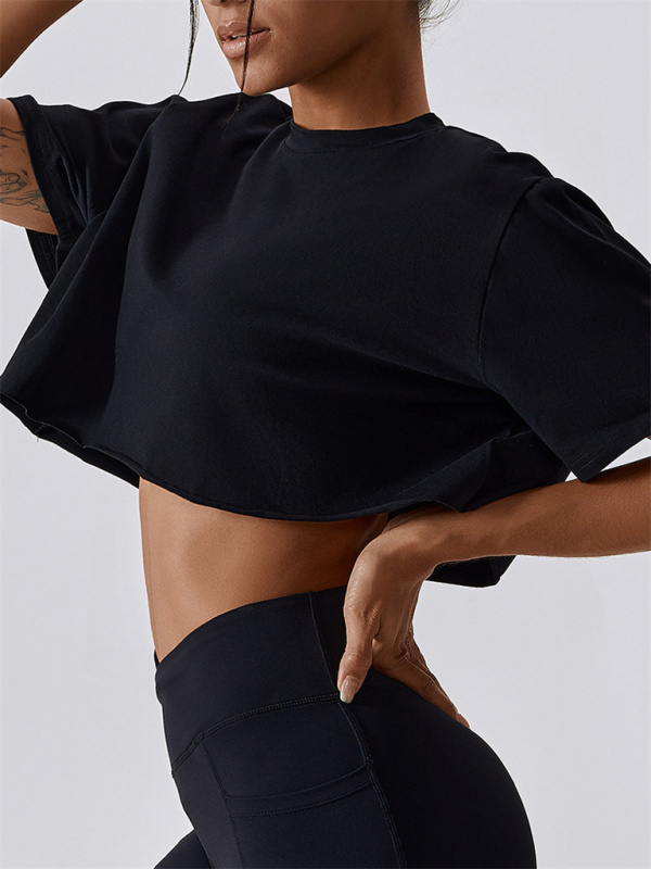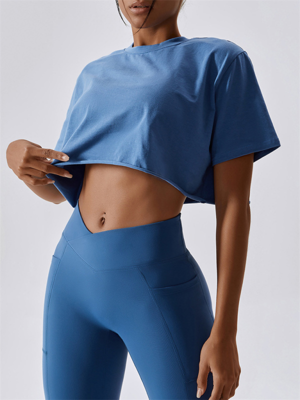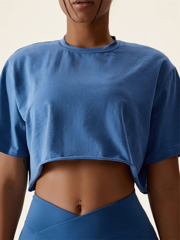 Women’s Knitted Round Neck Versatile Fitness Top Loose Sports T-Shirt