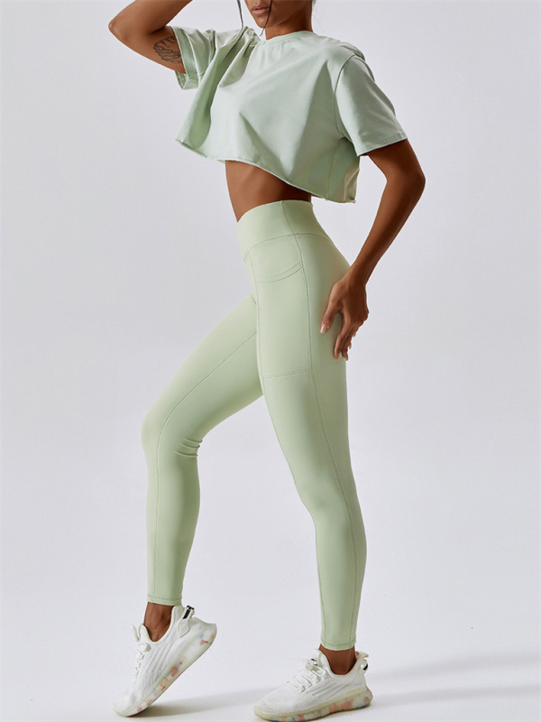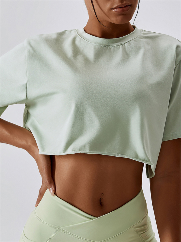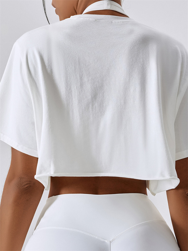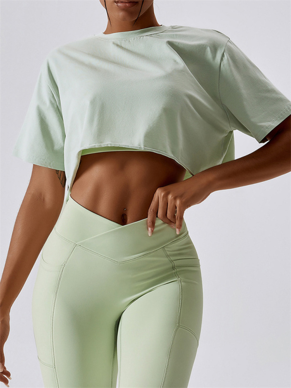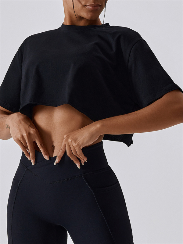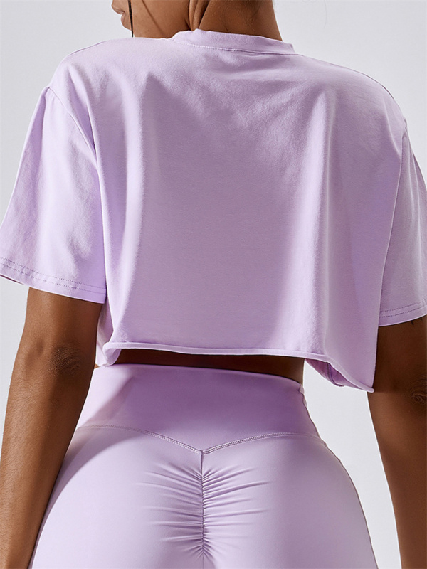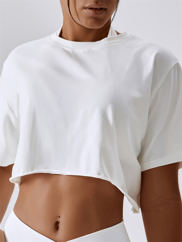 Women’s Knitted Round Neck Versatile Fitness Top Loose Sports T-Shirt