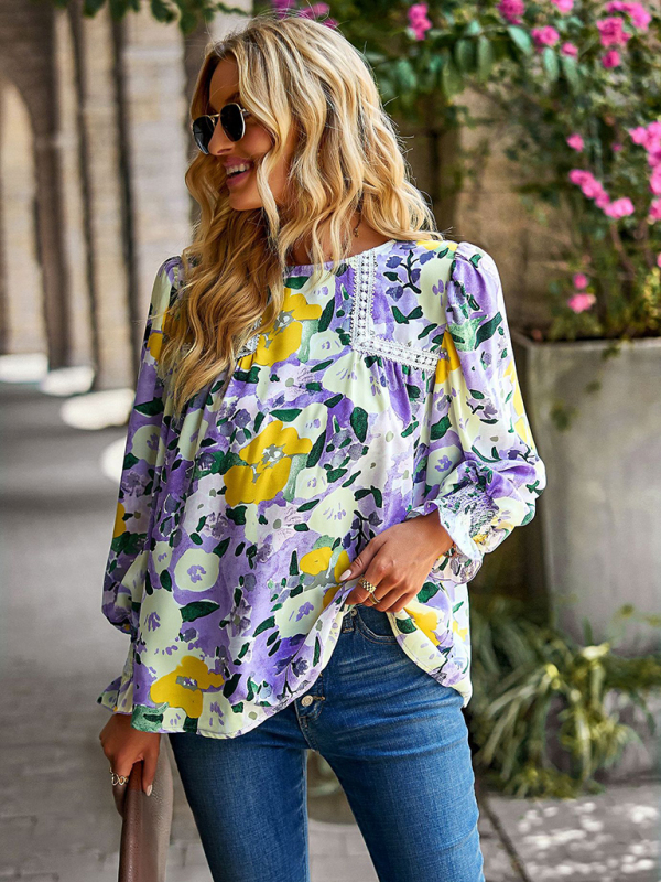 Women’s lace stitching floral temperament top all-match blouse