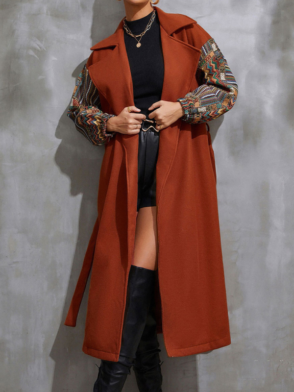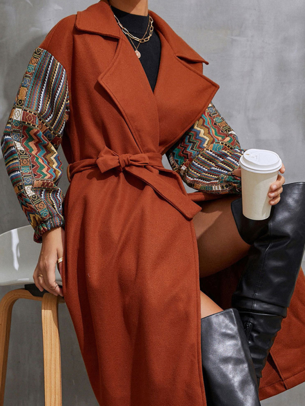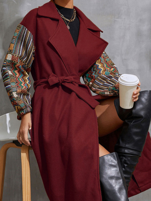 Women’s Lapel Loose Neck Waist Woolen Coat