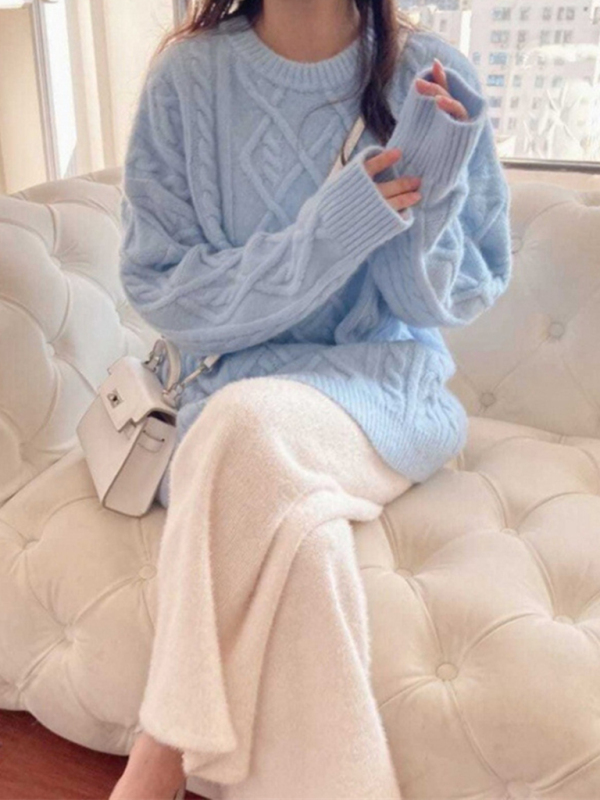 Women’s long sleeve round neck twist loose sweater