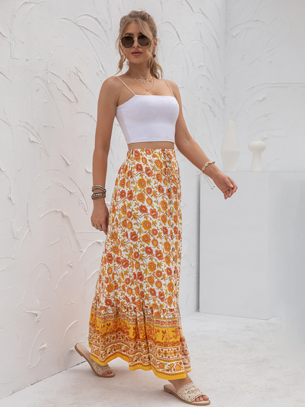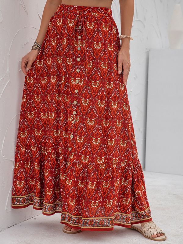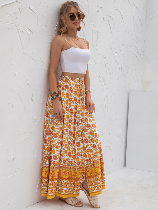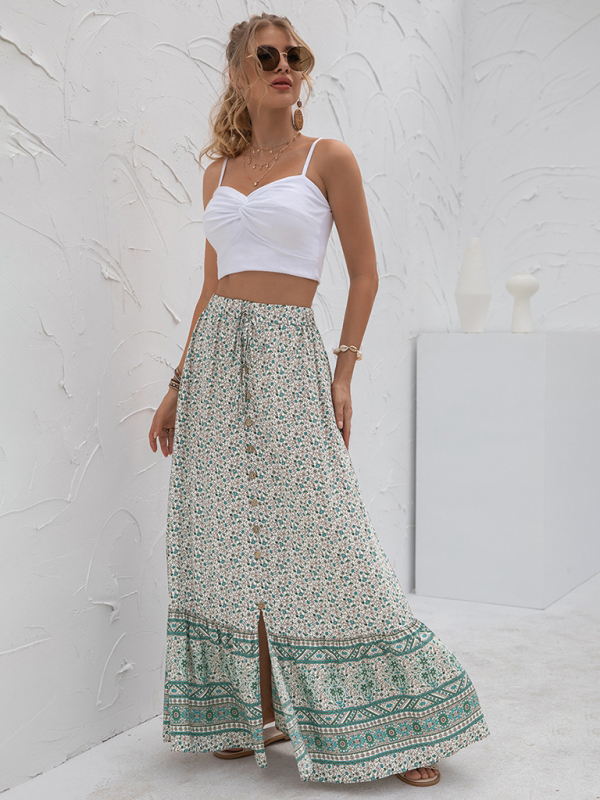 Women’s New Arrival High Waist Printed Breasted Button Slit Skirt. Please use the size guide shown in our pictures. Before choosing a size, please read each element of the size guide carefully. Unique design, classic style, casual and comfortable. It is suitable for outing and leisure. The size is measured manually, and the error of 1-3cm is normal.