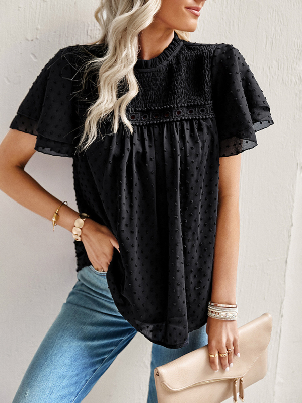 Women’s new jacquard temperament commuter short-sleeved shirt top