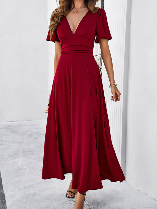Solid color V-neck waist-cinching long dress, the simple design makes the boring season colorful and interesting. A variety of matching options make you confident and beautiful. Please use the sizing guide shown in our images. Please read each element of the sizing guide carefully before choosing a size. The size is measured manually, and there is an error of 1-3cm, which is normal.