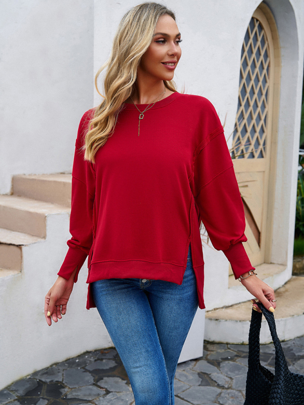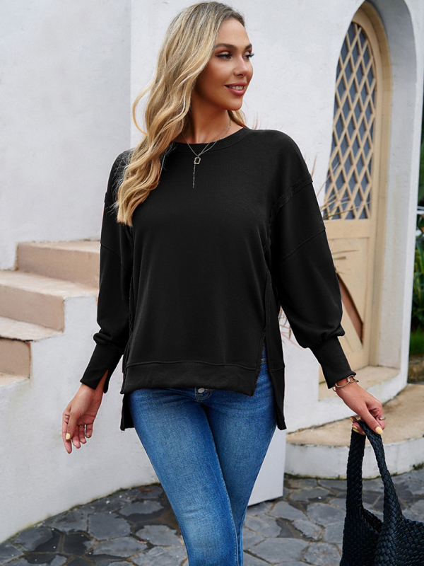 Women’s new style casual long-sleeved round neck solid color sweatshirt, the simple design makes the boring season colorful and interesting. A variety of matching options make you confident and beautiful. Please use the sizing guide shown in our images when purchasing. Please read each element in the size guide carefully before choosing a size. Sizes are measured manually, and an error of 1-3cm is normal.