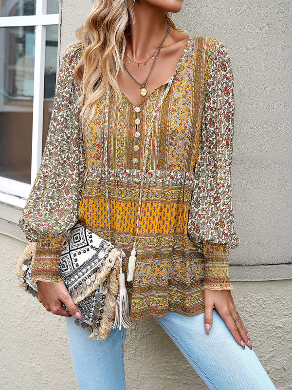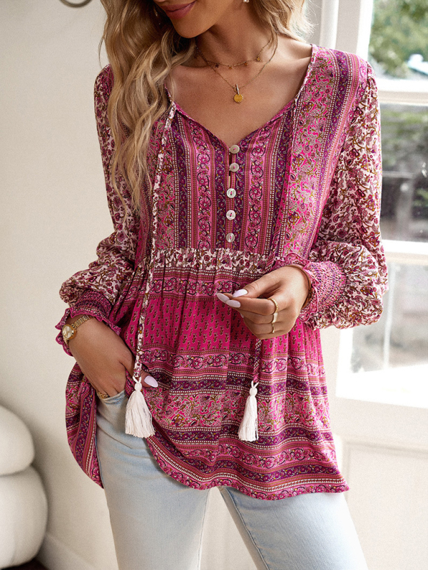 Women’s positioning printed button bohemian top