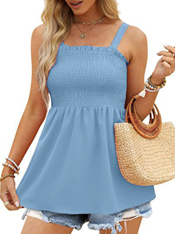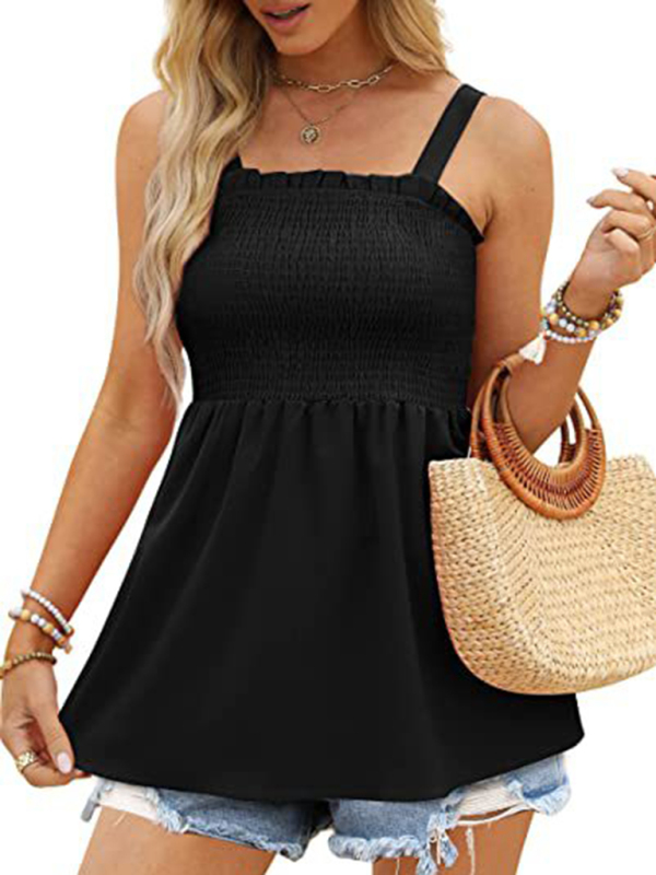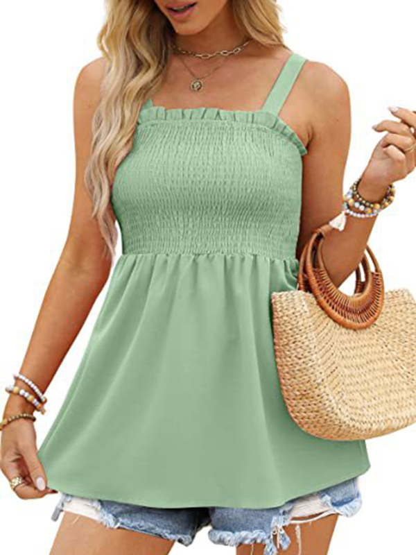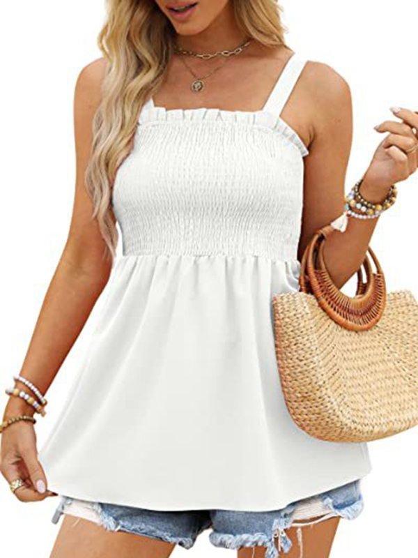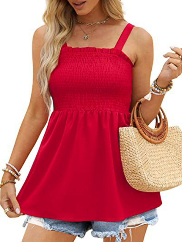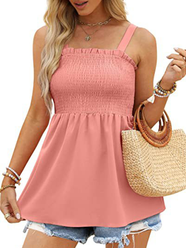 Women’sSolid color camisole ruffled pleated tank top featuring a stylish style and a soft and comfortable fabric. It can be worn for daily, dating, going out, vacation and so on. Washing method can be machine wash or hand wash. Fabric resists wrinkling and pilling. The size is measured by hand, and it is normal for there to be an error of 1-3cm.