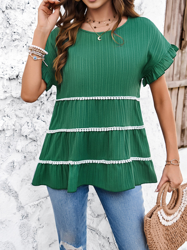 Solid color casual loose short-sleeved top, simple design makes the boring season colorful and interesting. A variety of matching options make you confident and beautiful. Please use the sizing guide shown in our images. Please read each element of the sizing guide carefully before choosing a size. The size is measured manually, and there is an error of 1-3cm, which is normal.