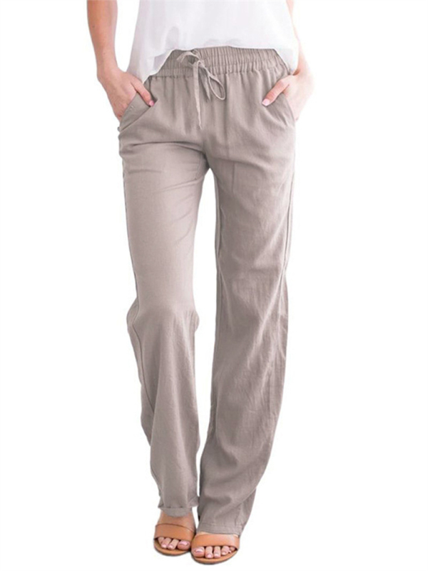 Women’s Solid Color Cotton Linen Drawstring Loose Casual Wide Leg Trousers
