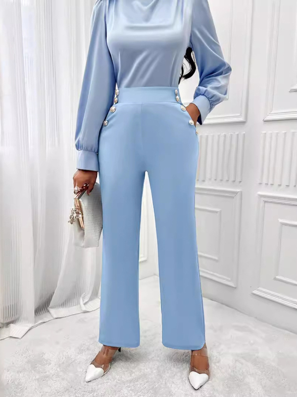 Women’s Solid Color High Waist Slim Straight Trendy Trousers