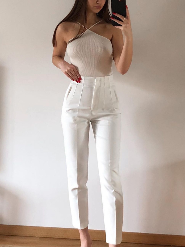 Women’s Solid Color High Waist Trousers Slim Casual Pants
