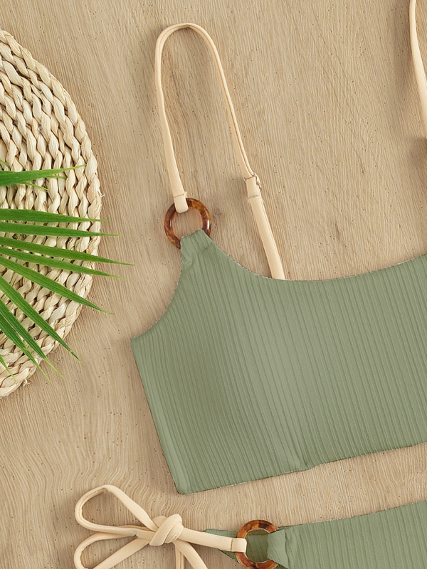 Women’s solid color hoop sexy bikini set with fashionable style and soft and comfortable fabric. Beach vacations, pool parties, it’s machine washable and hand washable. Fabric is wrinkle resistant and resistant to pilling. The size is measured by hand, and it is normal for there to be an error of 1-3cm.