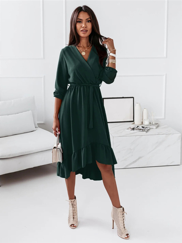 Women’s Solid Ruffle Elegant Long Sleeve Dress featuring a trendy silhouette in a soft and comfortable fabric. Whether it is daily, going out, vacation, work, etc., it can be worn by machine or hand. Fabric is wrinkle resistant and resistant to pilling. The size is measured by hand, and it is normal for there to be an error of 1-3cm.