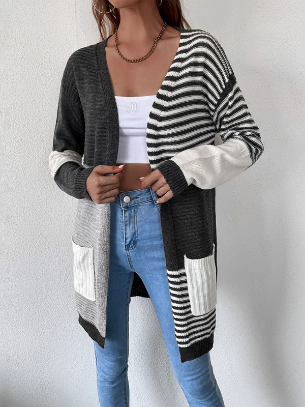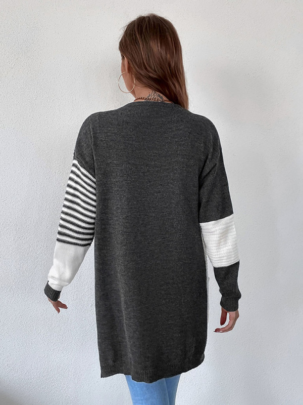 Women’s striped color blocking buttonless knit cardigan