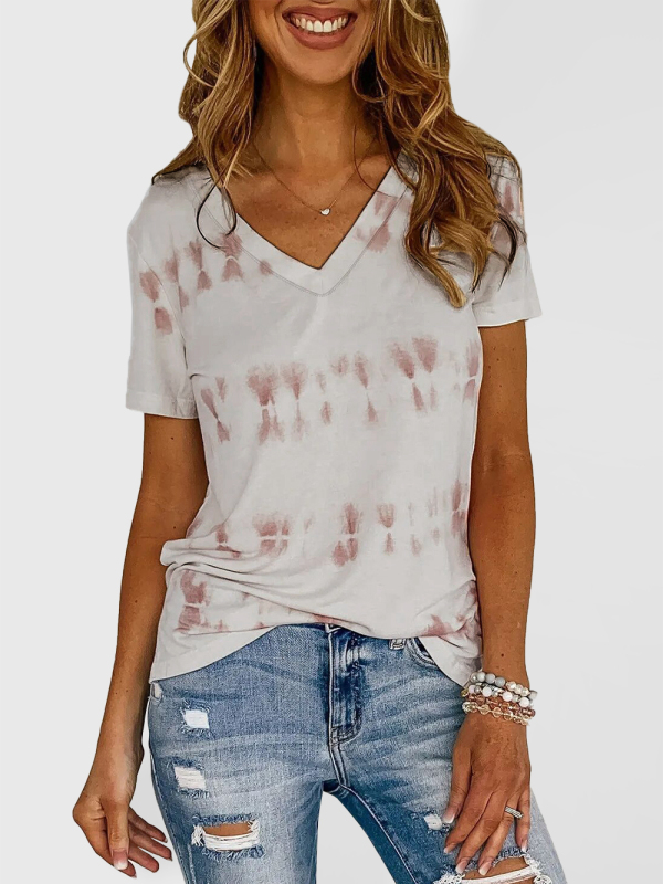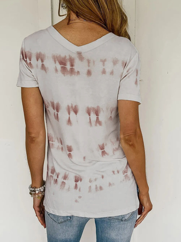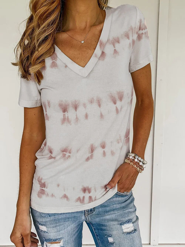 Women’s stripes dyeing printed casual short -sleeved T -shirt